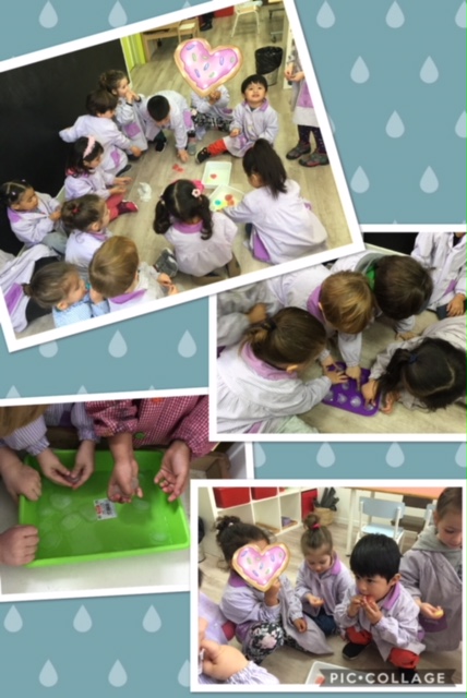 Com que havíem posat colorant i eren de diferents colors, alguns nens i nenes van pensar que també tindríen sabors. El de color groc creiem que podria ser de llimona, el de color vermell de maduixa…Així que per comprovar-ho vam decidir tastar-los.