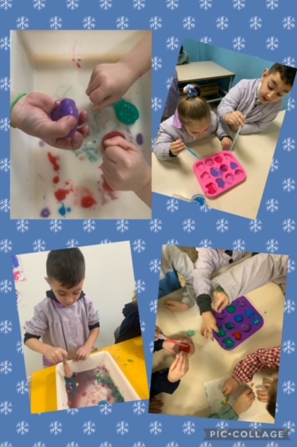 Les nenes i nens d’Educació infantil hem tingut la idea de fer gel.