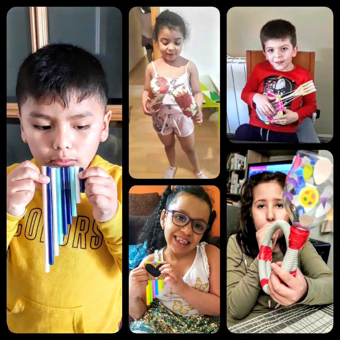 Els nens i nenes de primer han construït uns instruments molt divertits amb materials que tenien per casa per a posar ritme a aquests dies i volen compartir-los amb nosaltres.