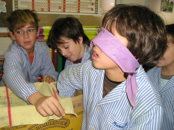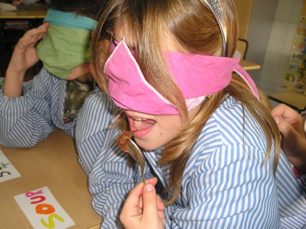 Després de treballar els cinc sentits i el vocabulari específic de cadascun d’ells els alumnes de quart han posat en pràctica tot el que han après, d’una manera més lúdica, a través de l’experimentació tal i com podem veure en les fotografies següents.