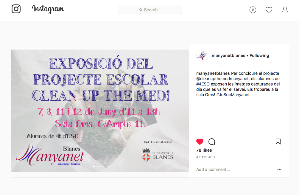 El curs 2017-18 aquest projecte es va enriquir amb la nostra participació en el programa Clean up the med i aquest curs 2020-21 es combinarà amb el projecte de microplàstics i “Som Platja” (vegeu apartat “projectes Flash”)