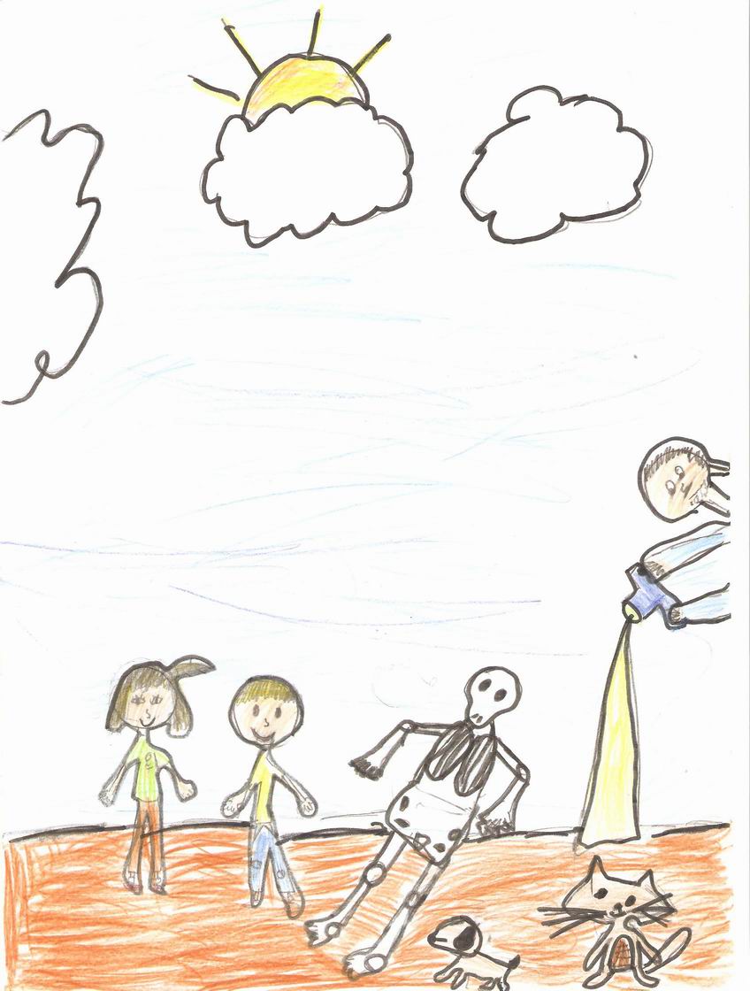 Van decidir anar a casa i disfressar-se de pallassos per despistar-lo i així ho van fer. Quan es va despistar, l’Emma li va prendre la càmera i li va donar al Joel; aquest li va fer una foto i el cos del lladre va quedar com un esquelet. Van cridar a molts gossos per què s’emportessin els ossos. Van prémer un botó de la càmera i van sortir totes les persones fotografiades tal i com eren. Els dos germans van decidir trencar la càmera i enterrar-la al bosc per què ningú la trobés ni la reparés mai més.