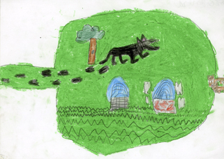 Els conillets, vam veure brillar les dents esmolades i els ulls ferotges del llop al costat d’un arbre. Espantats i assedegats, cada un va beure aigua d’una font diferent, sense saber que és el que passaria.
