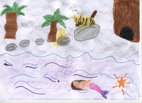 Després de moltes hores caminant van arribar al MAR LILA de dia i allà van trobar una sirena….