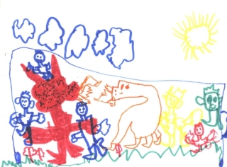El dia de la festa hi havien nens i nenes que ploraven quan van veure el monstre de foc