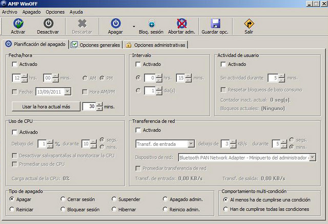 A la part inferior de la pantalla també podem seleccionar quin tipus d’apagada de màquina podem planificar, com bloquejar la sessió (que el mateix windows ja pot fer), o bé apagar la sessió o totalment la màquina.