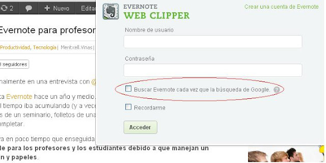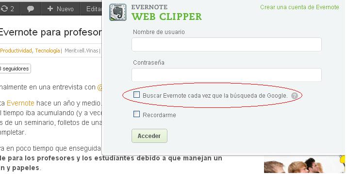 Per activar aquesta funcionalitat, cal instal·lar l’extensió Evernote Web Clipper per Chrome o Firefox i marcar la casella Cercar a Evernote cada vegada que busquem a Google.