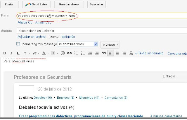Des del compte de correu (XTEC, GMail, Hotmail, Outlook, …) a Evernote