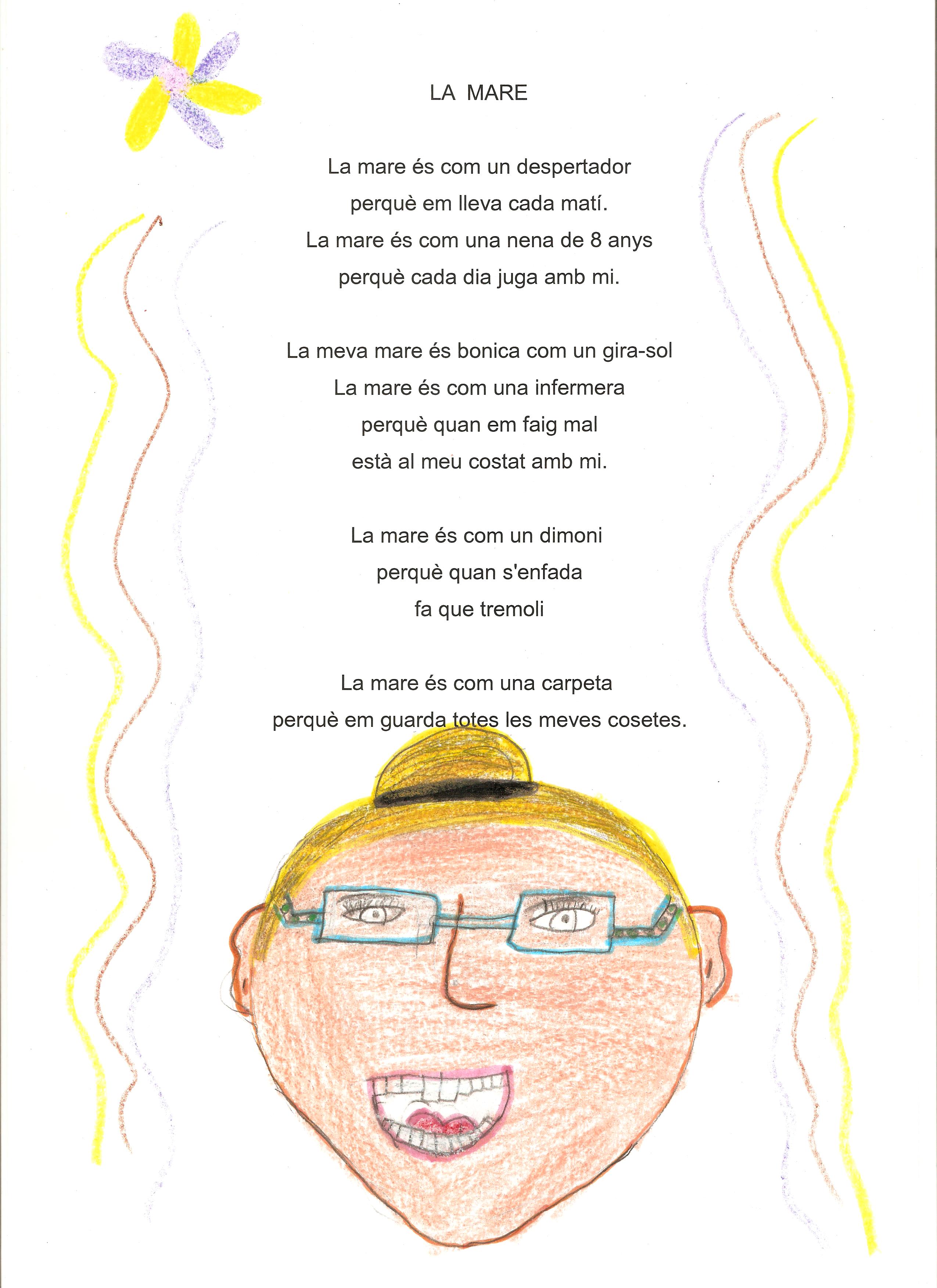 L’alumna Ingrid Puig Cahiz de 3r, ha estat guanyadora del primer premi de poesia en la categoria del Cicle Mitjà de la revista Pissiganya, amb el poema “LA MARE”. On ens explica les “utilitats” d’una mare qualsevol: fa de carpeta, de dimoni, de despertador. I fins i tot…