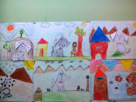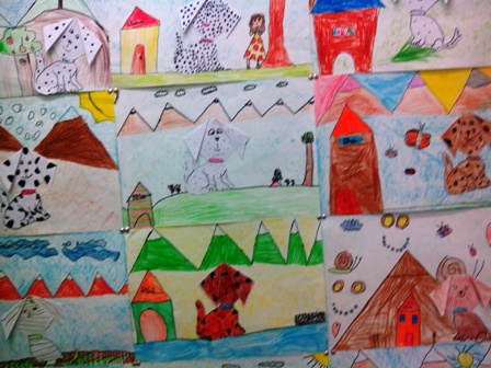 Els nens i nenes de primer a plàstica estem treballant els animals en anglès i hem fet uns gossos ben macos, mireu mireu.