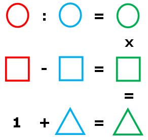 Has de col·locar dins de les figures els nombres del 2 al 9 (sense repetir-ne cap) per tal que es compleixin les igualtats.