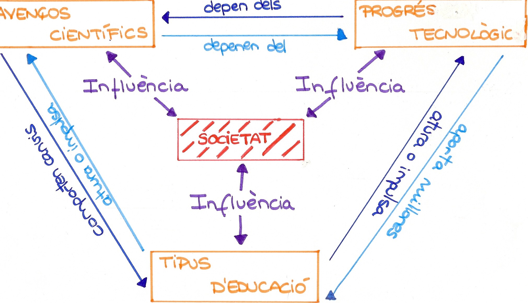 9. Insereix en aquest document un mapa de conceptes sobre la relació entre Ciència, Tecnologia, Societat i Educació que, prèviament, hagis realitzat a llapis i paper i escanejat.