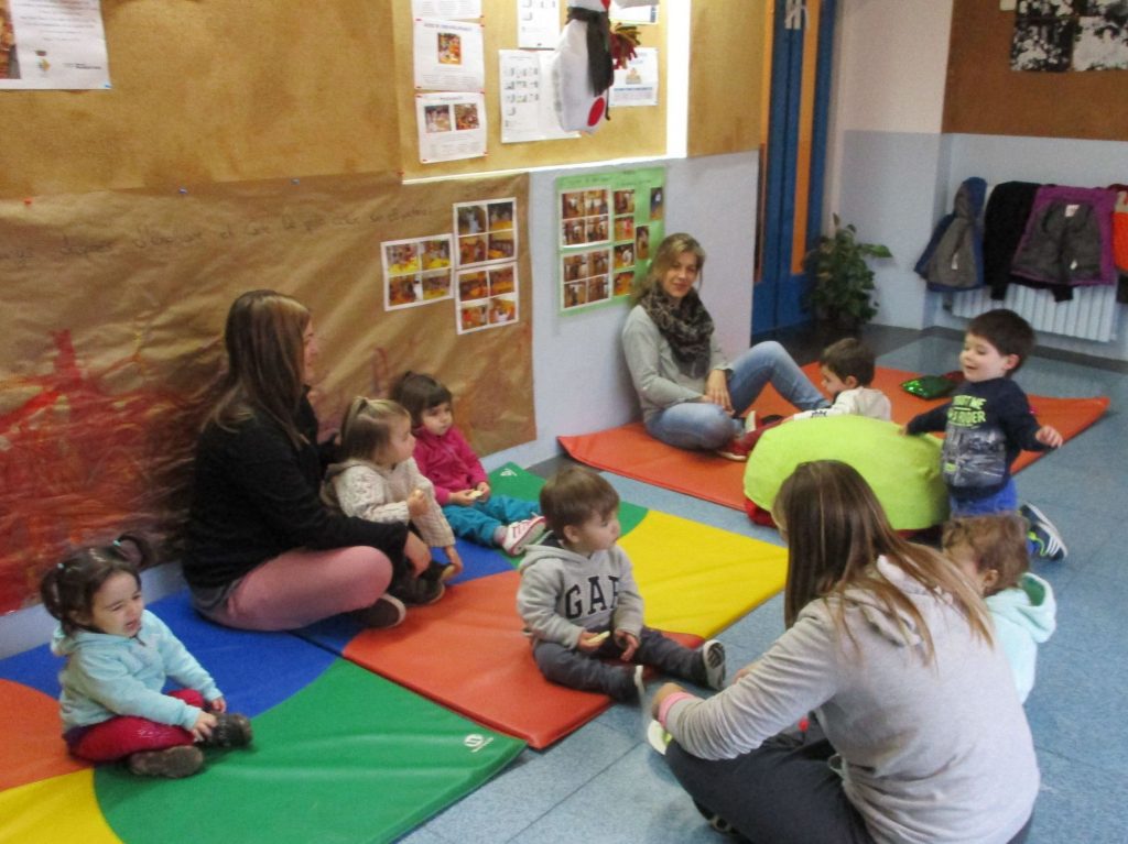 Les rutines diàries del matí (el “Bon dia” i l’esmorzar) també es varen fer a l’entrada. Era molt bonic veure com anava nevant i s’anava emblanquinant el pati!