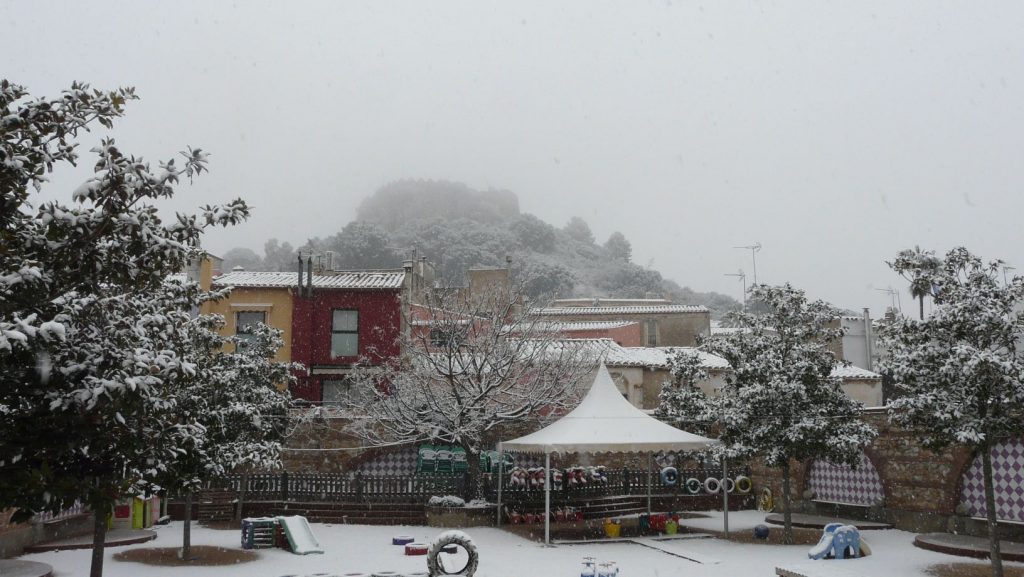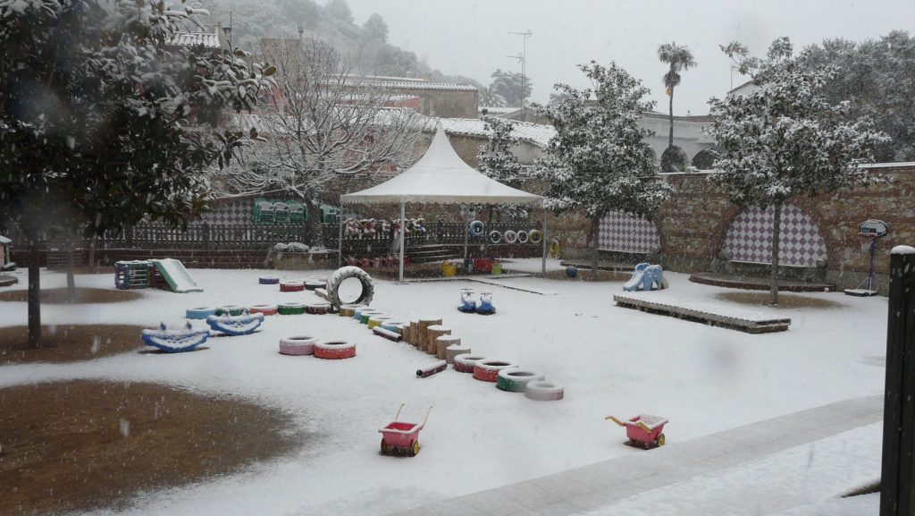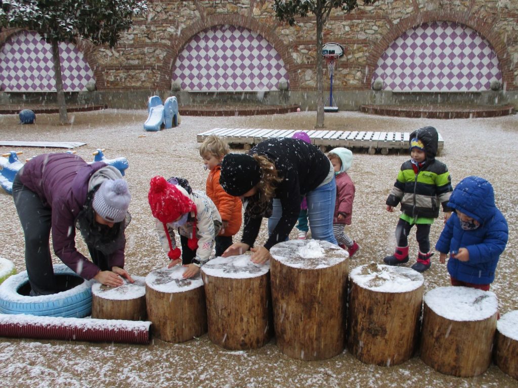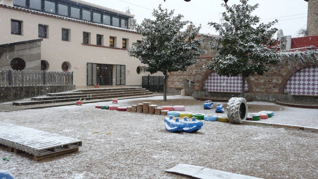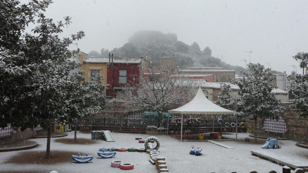 No parava de nevar i, a poc a poc, les famílies venien a buscar els infants abans de l’hora habitual de sortida. A la llar, varem passar la resta del matí a l’entrada; jugant i veient com el pati i la muntanya amb el castell quedaven cada cop més blancs!