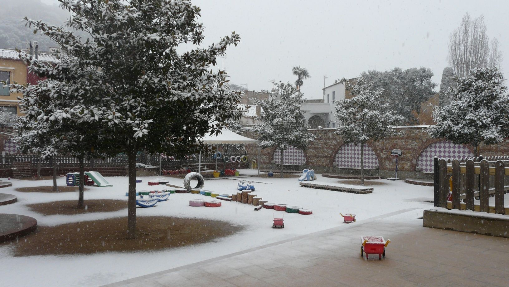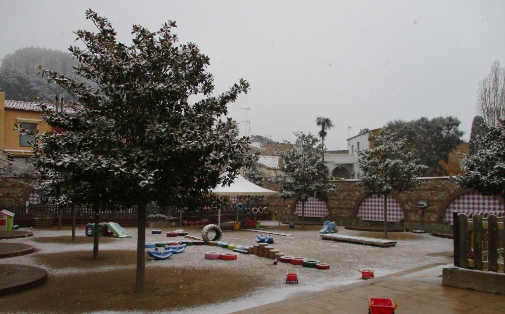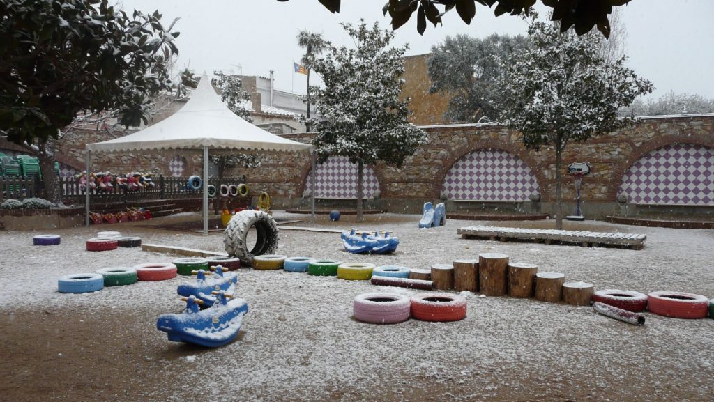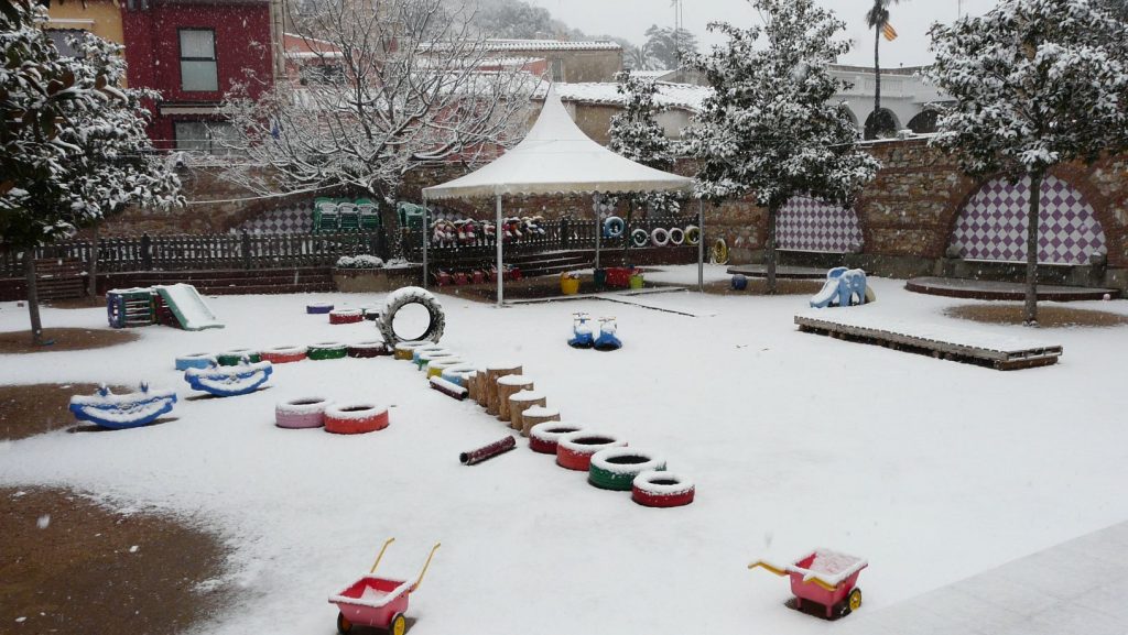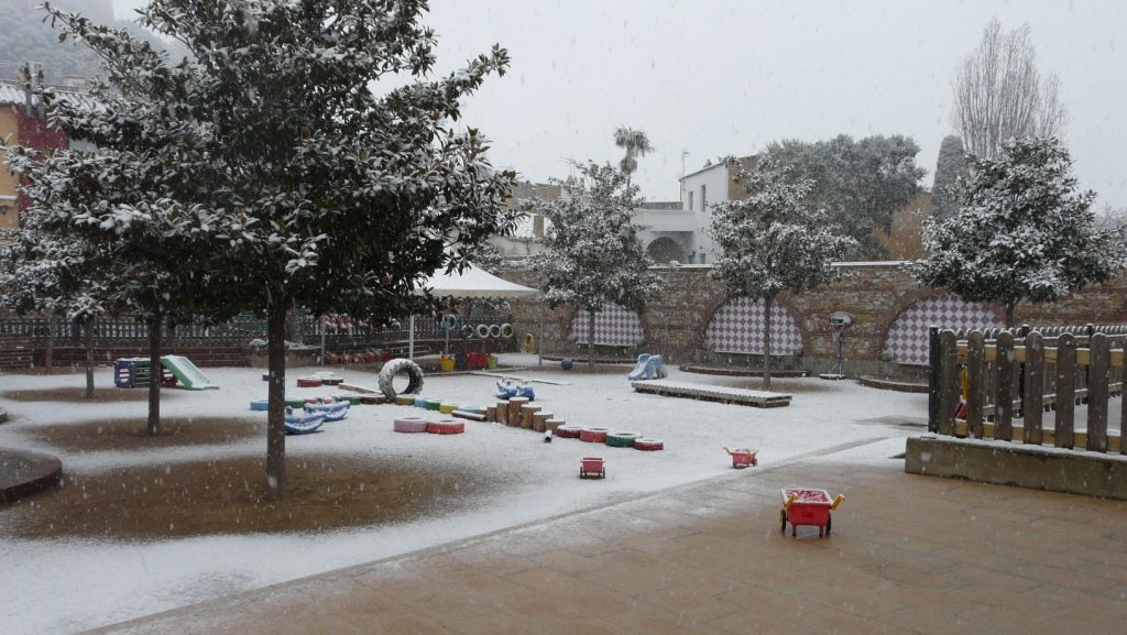 No parava de nevar i, a poc a poc, les famílies venien a buscar els infants abans de l’hora habitual de sortida. A la llar, varem passar la resta del matí a l’entrada; jugant i veient com el pati i la muntanya amb el castell quedaven cada cop més blancs!