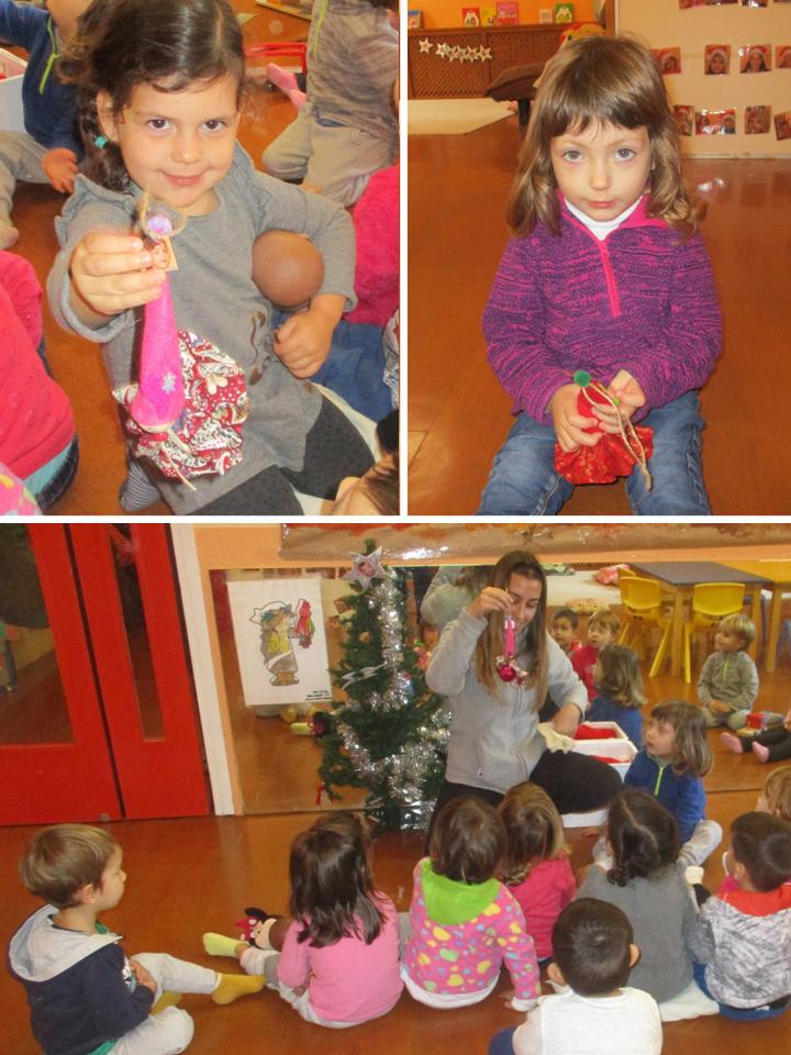En el cas del grup dels petits, el calendari d’advent els va ajudar a forjar-se una idea del Nadal tot portant material per decorar l’arbre i la resta de l’aula, menjars típics per tastar (xocolatines, massapà), imatges i cançons típiques d’aquestes festes, etc.
