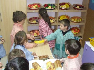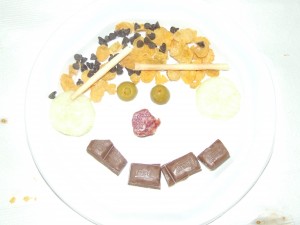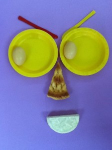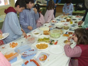 Durant una estona hem fet art efímer. Els nens han pogut fer les seves creacions als plats i després han pogut comprovar que amb els aliments ben col·locats es poden fer creacions artístiques. Seguidament han pogut constatar que l’art també es pot menjar i que té MOLT BON GUST!