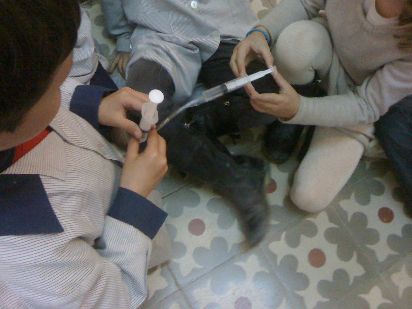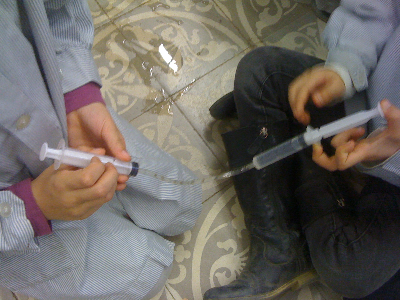 Hem trobat la resposta, experimentant amb dos xeringues i aigua.