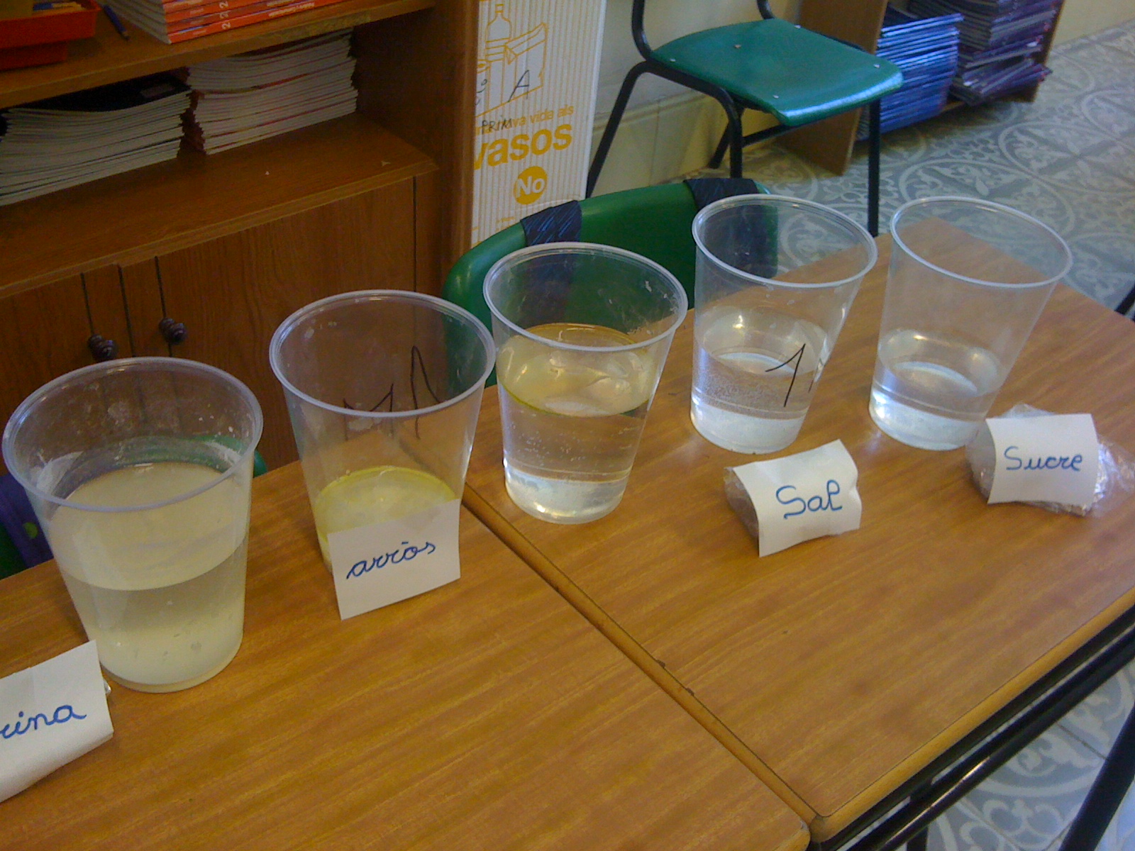 Hi ha substàncies com el sucre o la sal que amb aigua es dissolen, altres com la farina,l’arròs…s’assenten en el fons del got i l’oli sura.