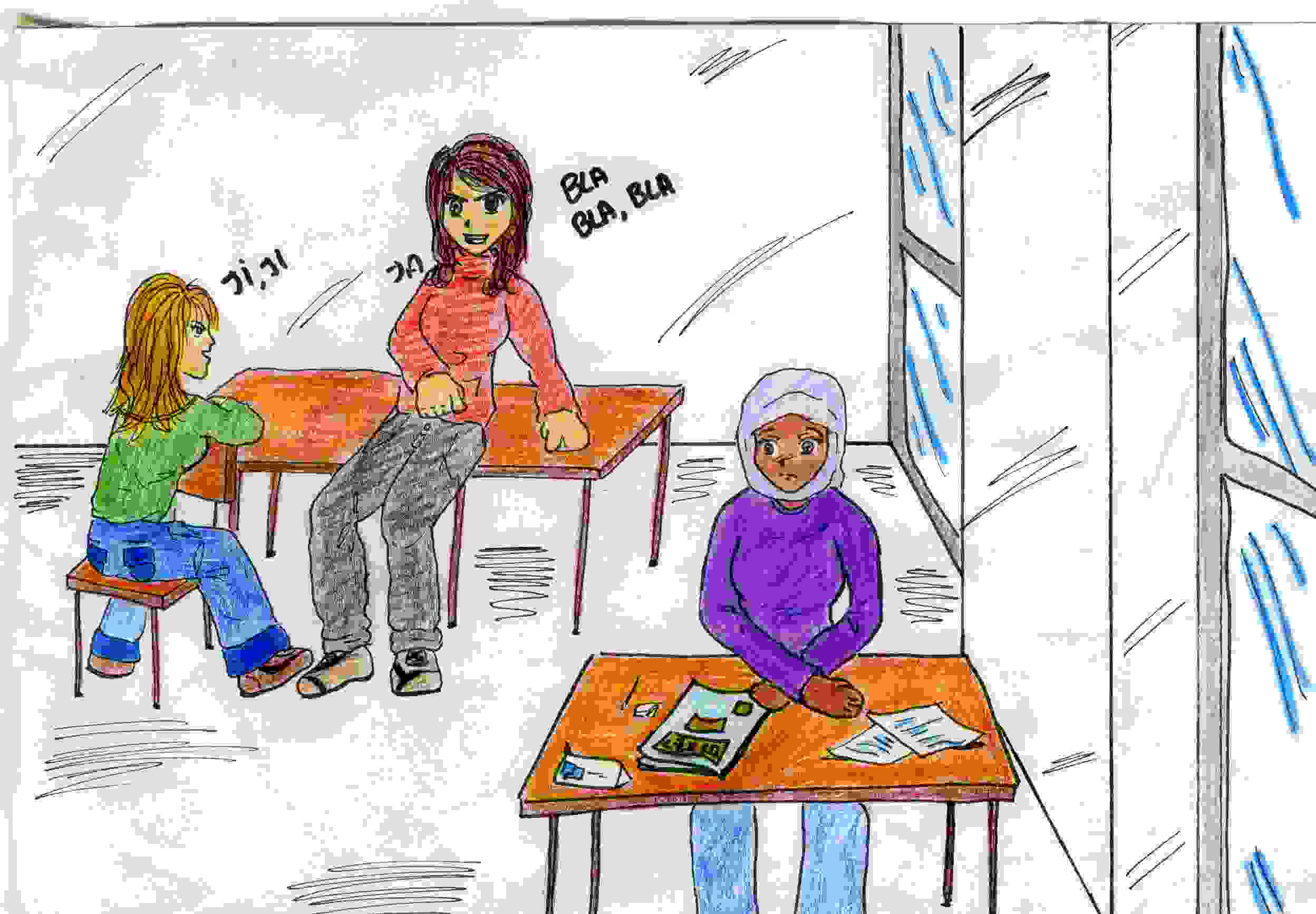 - Noia racista (Yaiza):assetja la noia musulmana pel simple fet de ser d’una altra religió.