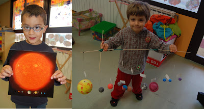 Aquesta tarda hem decidit fer de pintors! I hem utilitzat una nova tècnica de dibuixar: a través d’un mirall! La Marta ens ha explicat que ens havíem de mirar amb detall al mirall i després dibuixar el què reflectia el mirall en el full en blanc col·locat verticalment!