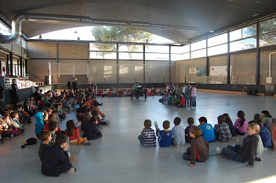 Avui a la tarda hem celebrat Santa Cecília, patrona de la música, gaudint d’un espectacle realitzat pels alumnes de Primària al pavelló Dani Pedrosa. Els grans de l’escola ens han cantat les seves cançons d’aula i ho han fet molt bé! Ens ha agradat molt veure com els germans grans cantaven i sentir les seves meravelloses veus! Finalment, hem aprofitat una estona per jugar al pati de Primària.