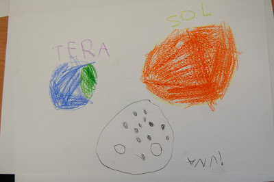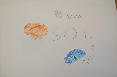Un cop fet el croquis, ahir a la tarda vam començar, per petits grups de tres núvols, a pintar els planetes!! Vam utilitzar pintura i si no recordàvem de quin color era el planeta, ens dirigíem al croquis penjat al passadís per ajudar-nos. Esperem que a finals de setmana us puguem ensenyar la nostra maqueta del Sistema Solar!