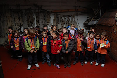 El proper dilluns a l’aula en parlarem una mica més… perquè l’Isaac ens va donar molta informació i creiem que és important parlar-ne una mica més tranquil·lament!! Al acabar, vam anar a veure un vaixell que tenen els del Museu Marítim i que ens va permetre fer-nos una idea de com viuen els mariners: on dormen, les cordes que utilitzen per pescar, l’àncora, etc. Ens va agradar molt veure el vaixell per dins!!
