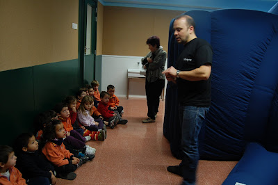 Aquest matí hem rebut la visita del Digiplanetàrium del Jordi!! Estàvem molt emocionats d’entrar per segona vegada a la “bombolla” anomenada digiplanetàrium! Així que a dos quarts de 10 hem baixat cap al pis de Primària on el Jordi havia instal·lat la bombolla en una aula.