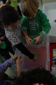 (Posem el cotxe i efectivament, flota. Ara… observem què passarà amb una pilota d’espuma, però abans fem les nostres hipòtesis)