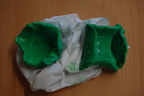 I… la van trobar! La forma com de U, ajudats una mica per la Marta en la fabricació, van adonar-se que si feien com un cistell petit la plastilina flotava! Perfecte!!