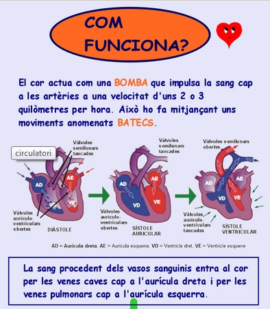 L’aparell circulatori s’encarrega de portar la sang per tot el cos. Està format pel cor i els vasos sanguinis. La funció del cor és impulsar la sang pels vasos sanguinis.