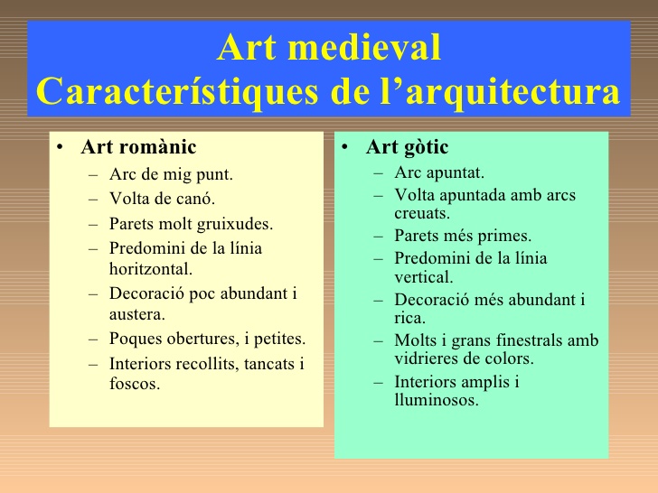 CARACTERÍSTIQUES MÉS DESTACADES DEL ROMÀNIC I EL GÒTIC