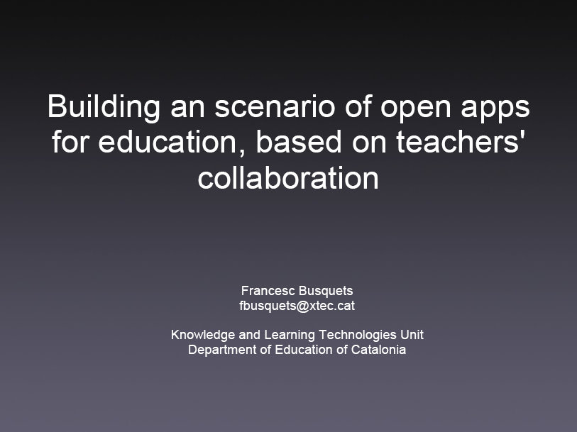 Build an scenario of open apps for education, based on teachers’ collaboration Francesc Busquets