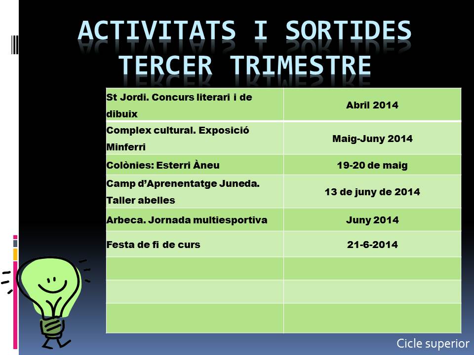 Activitats i sortides tercer trimestre Published 8 octubre 2013 at 960 × 720 in Activitats i sortides tercer trimestre ← Previous