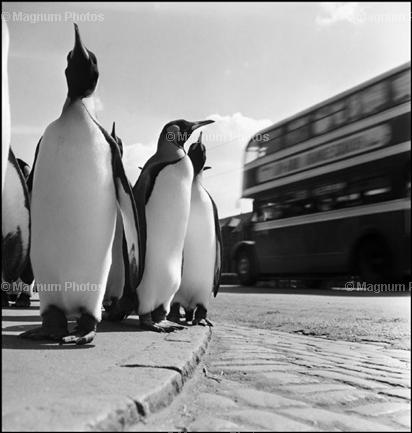 Werner Bischof SCOTLAND. Town of Edinburgh. 1950. Penguins from the zoo taking their weekly walk. The director of the zoo walks them through the city every week in order to attract people to the zoo.