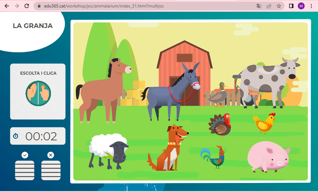 En aquesta ACTIVITAT INTERACTIVA treballarem el nom dels animals de granja. Sortirem per torns a la PDI. Cada nen/a escoltarà el nom d’un animal i haurà de “clicar” damunt del seu dibuix. Les activitats amb la PDI són molt motivadores perquè els nens i nenes aconsegueixen el reconeixement dels companys/es quan ho fan bé.