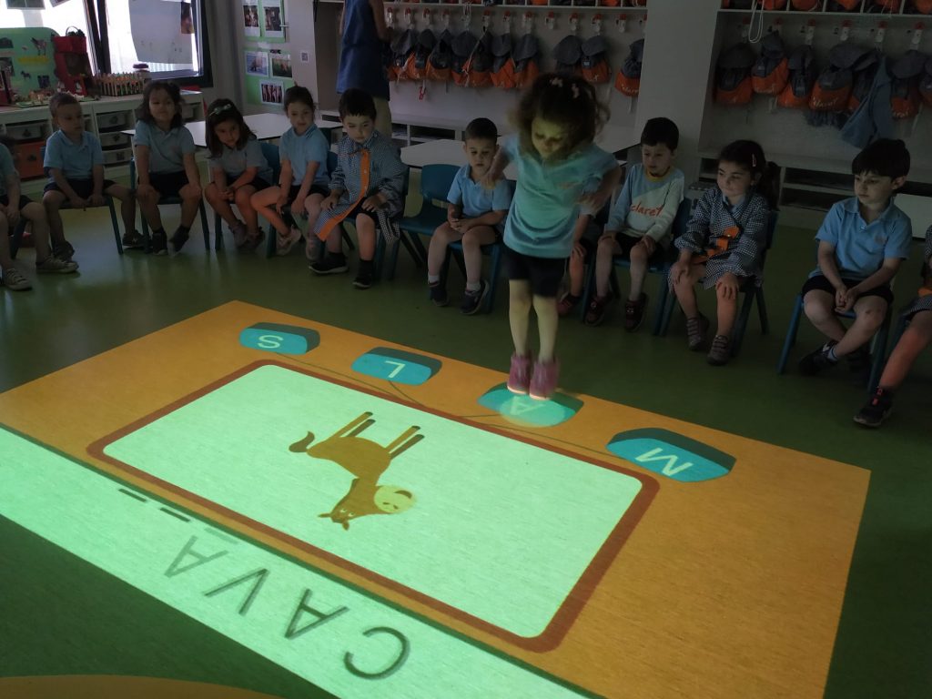 Per fer-ho, els infants hauran de saltar damunt de les lletres que hi ha projectades a terra i poc a poc anar confegint tota la paraula. Aquesta activitat es realitzarà amb tot el grup classe perquè així els infants es puguin ajudar uns als altres.