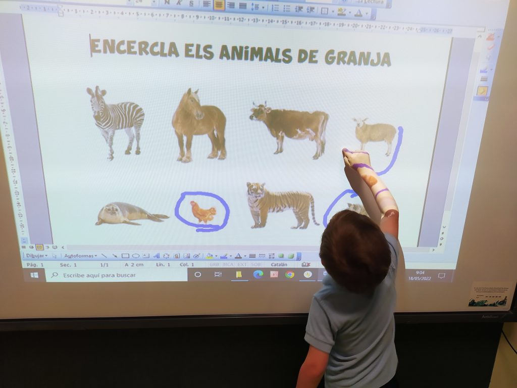 Prepararem diverses pantalles on apareixeran animals dels dos tipus barrejats. Per torns, aniran sortint els nens i nenes i hauran d’encerclar un animal de granja.