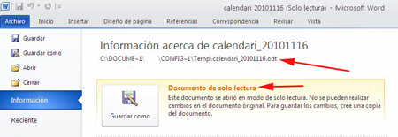 Recordem, però, que un arxiu “odt” obert en word caldrà guardar-lo amb un altre nom, doncs s’obrirà com a document de sols lectura.