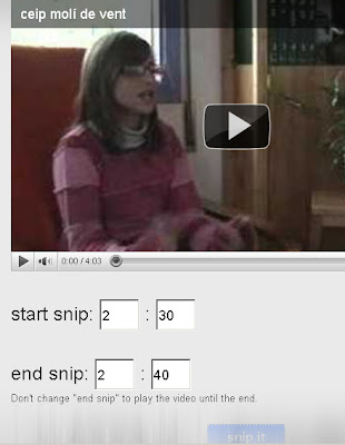 3.- Li donem al “enter” i automàticament veurem el clip de vídeo. Només caldrà escriure el punt d’inici i final que volem que es reprodueixi. I fer clic al final a “snip it”: