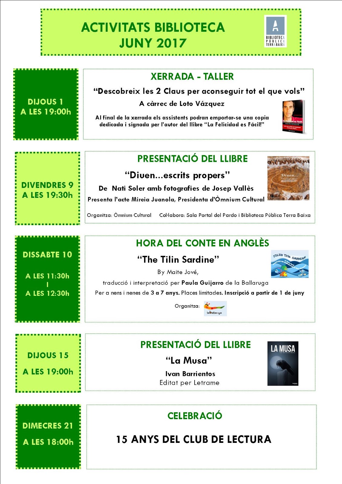 Quan arriba l’estiu tenim molt de temps i és un bon moment per aprofitar i gaudir d’una bona lectura. Aquí hi trobareu lectures pels més petits de la casa, pels qui comencen a llegir i pels qui volen gaudir d’una bona novel·la juvenil. Per riure, per aprendre, per passar una bona estona… Lectures fresques i amb molt de ritme.