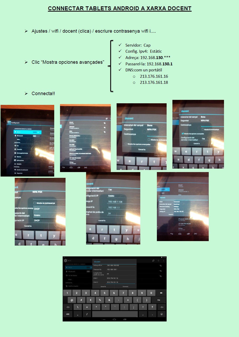 En cas de que no tingueu activat el DHCP al vostre centre (assignació dinàmica d’ip), heu de donar una IP fixa a cada Tauleta per a poder tenir connexió a internet.