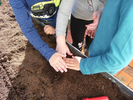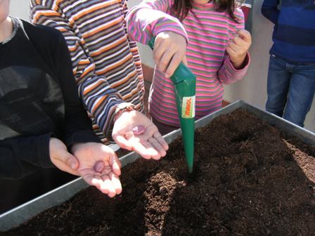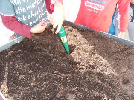 Després hem plantat posant tres llavors per forat.