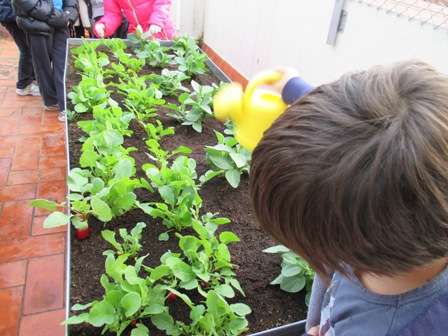 Els de primer han plantat maduixes en l’espai que hi havia els raves