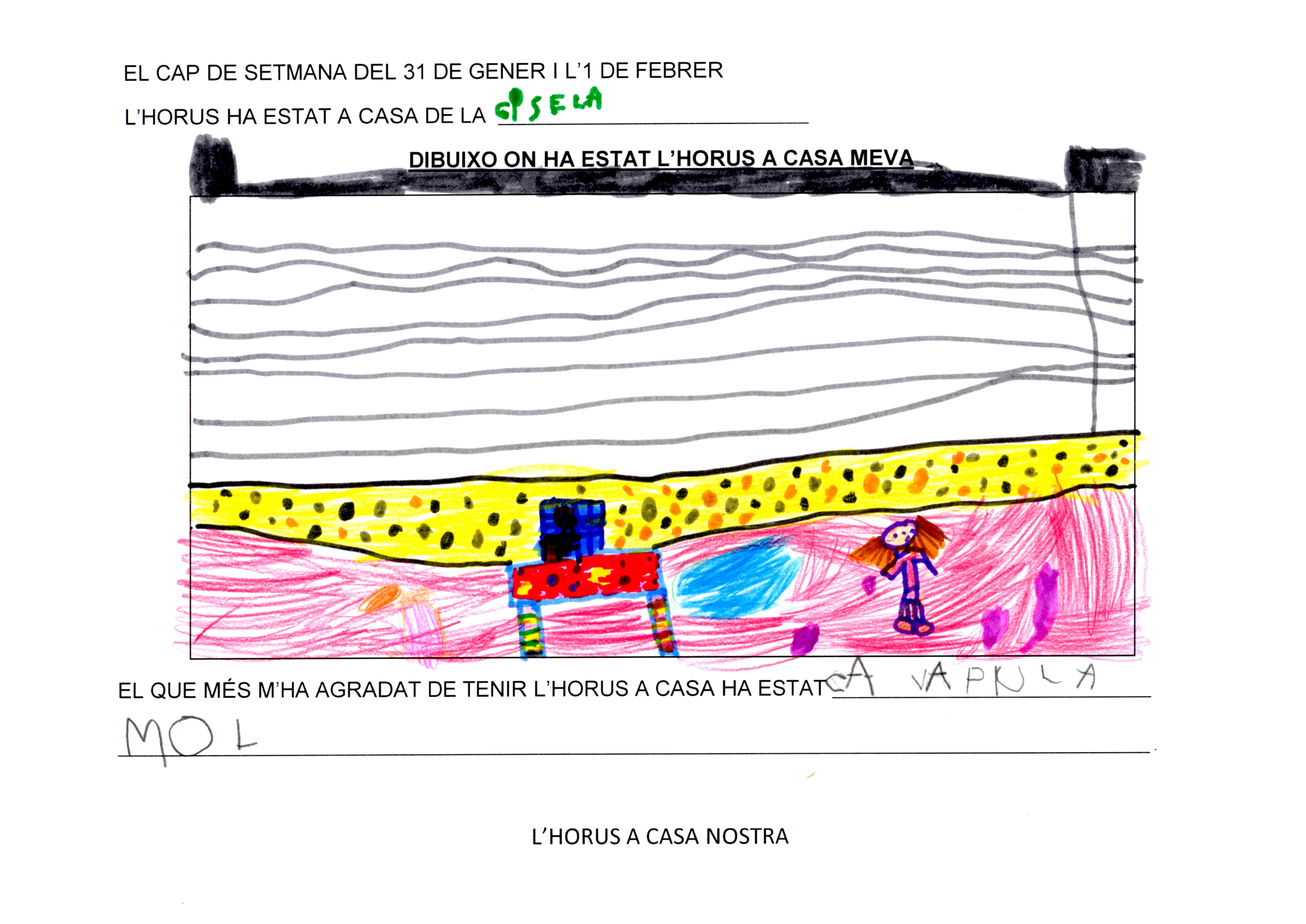 LA GISELA HOLA, SÓC LA GISELA, M’HE EMPORTAT L’HORUS A CASA I M’HO HE PASSAT MOLT BÉ . PODEU VEURE EL DIBUIX QUE HE FET I LA FOTOGRAFIA ON ESTIC AMB ELL, LA MEVA CARA HO DIU TOT !!!