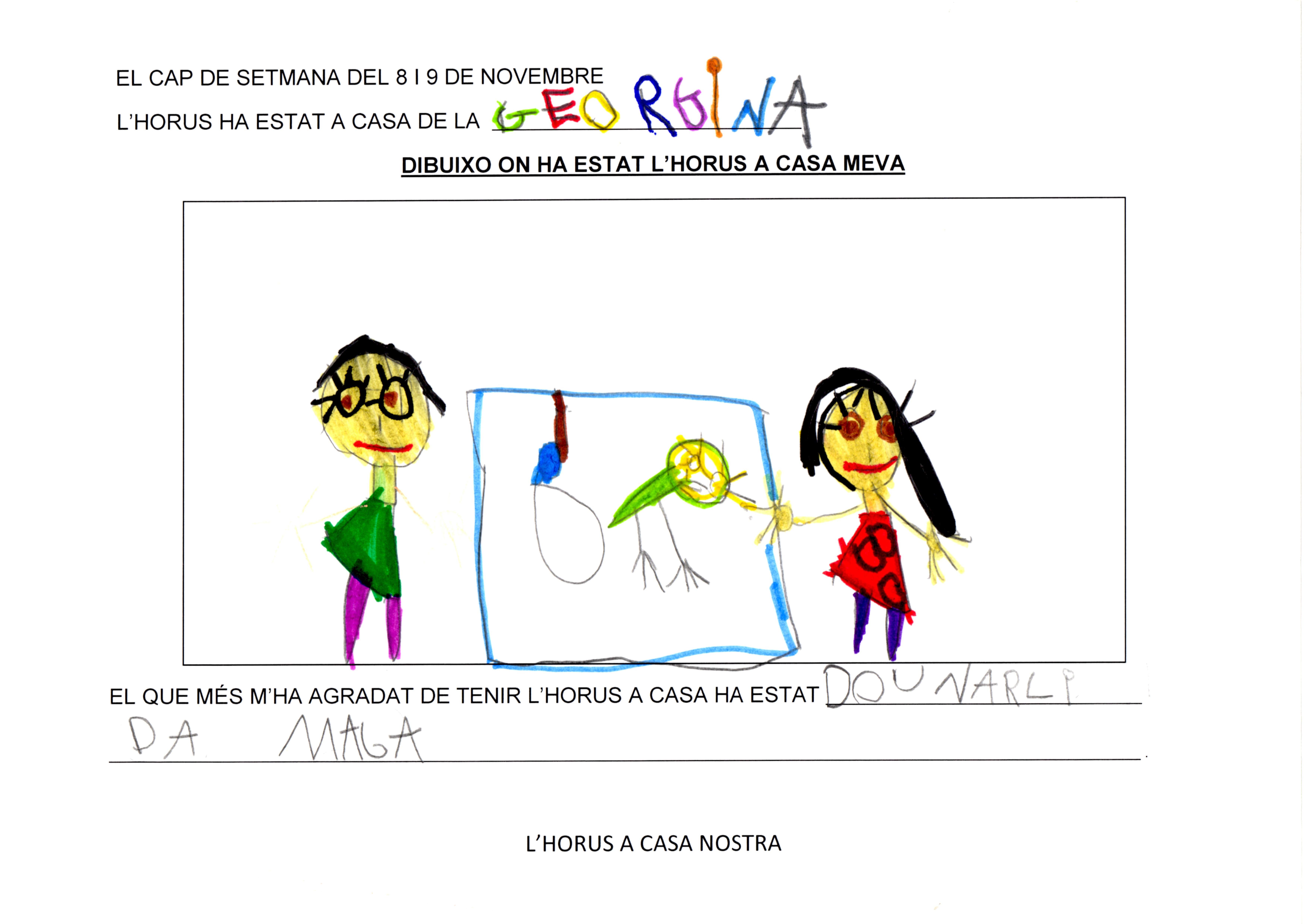 LA GEORGINA HOLA SÓC LA GEORGINA, EM VAIG EMPORTAR L’HORUS A CASA ELS DIES 8 I 9 DE NOVEMBRE. HE FET AQUEST DIBUIX I TAMBÉ EM PODEU VEURE A CASA AMB L’HORUS I LA MEVA GERMANA.