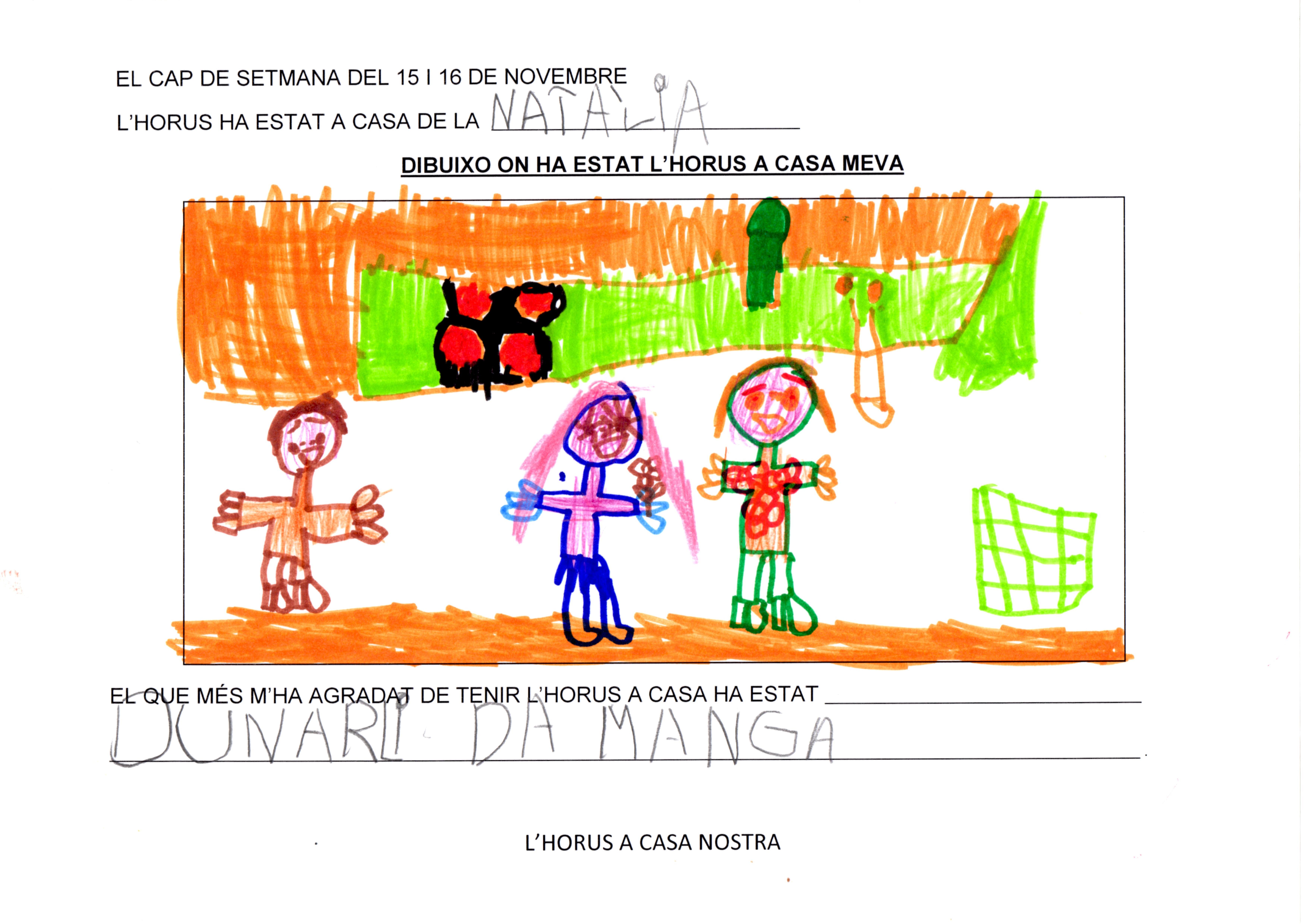 HOLA SÓC LA NATÀLIA, EM VAIG EMPORTAR L’HORUS A CASA ELS  DIES 22 I  23  DE NOVEMBRE.  HE FET AQUEST DIBUIX .  TAMBÉ HEM PODEU VEURE AMB L’HORUS A LA NOSTRA CLASSE.