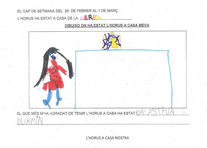 LA NEREA SÓC LA NEREA, HOLA A TOTS, LA SETMANA DEL MEU ANIVERSARI EM VAIG EMPORTAR L’HORUS A CASA MEVA, M’HA AGRADAT MOLT TENIR-LO I HE FET AQUEST DIBUIX. EM PODEU VEURE AMB ELL QUAN ESTAVEM AL CARRER.
