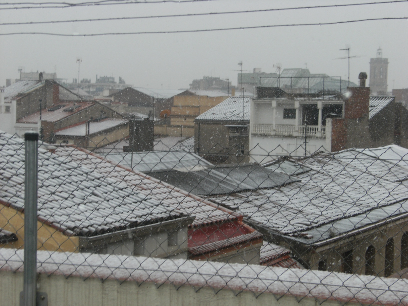 El dimecres 4 de febrer va nevar a Sabadell. Quan ens vam adonar que estava nevant tant a 3r i a 4t ens van deixar sortir a l’hort a mirar les teulades nevades.